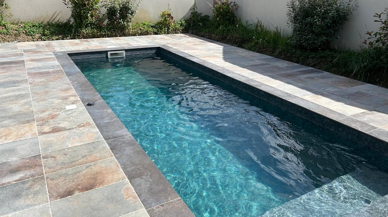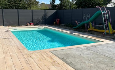 avec le liner gris clair, moderne et sophistiqué, il confère à votre piscine un look plus contemporain et haut de gamme.